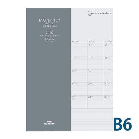 レイメイ スケジュール帳 ノート 2026年 1月始まり 2025年12月 システムノートダイアリー マンスリー ブロック ノート付 B6サイズ マンスリー ビジネス手帳 プレゼント 就職祝い 新成人 男性 女性