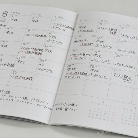 | 主レイアウト | 1ヶ月ブロック(見開き1ヶ月)1週間バーチカル |