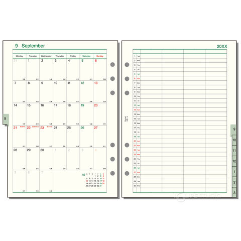 | 主レイアウト | 片面1ヶ月ブロック式 |