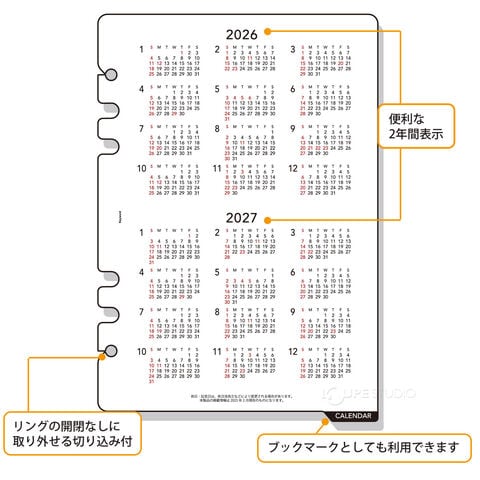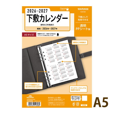 レイメイ藤井 手帳 2026年 1月始まり システム手帳用 リフィル キーワード 下敷カレンダー A5サイズ A5 スケジュール帳 ビジネス手帳 プレゼント 就職祝い 新成人 男性 女性スペック