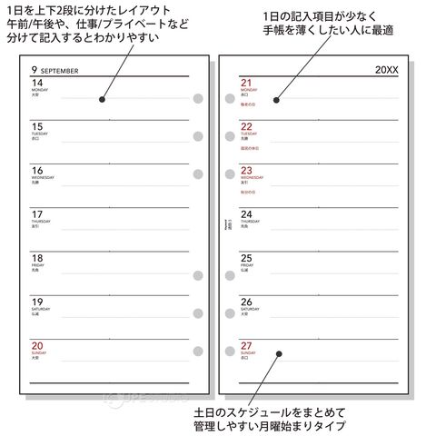レイアウトウィークリー、週間、リスト