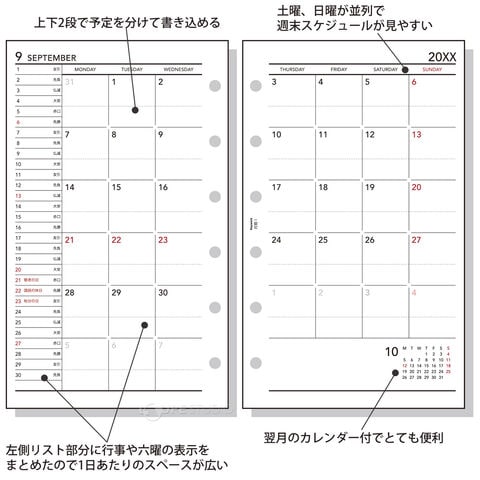 | 主レイアウト | 見開き両面1ヵ月ブロック式 |