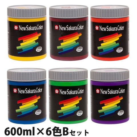 絵具 絵の具 アクリル絵の具 ニューサクラカラー 600ml 6色Bセット ポリチューブ入り420ml 画材 絵 イラスト アート 図工 美術 学校 共同制作 展示作品 パネル 看板 装飾 行事 壁画 木 布 石 金属 プラスチック 発泡スチロール サク