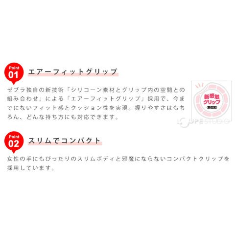 グリップにゼブラ独自の「シリコーン素材とグリップ内の空間との組み合わせ」を採用し、今までにないフィット感とクッション性を実現しています。