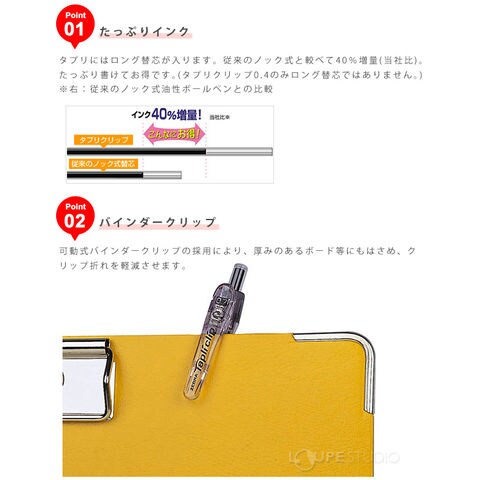 ボールペン ペン 1.6 油性 文具 文房具 筆記用具 オフィス 学校 タプリクリップ 1本入 おしゃれ おすすめ 黒 赤スペック