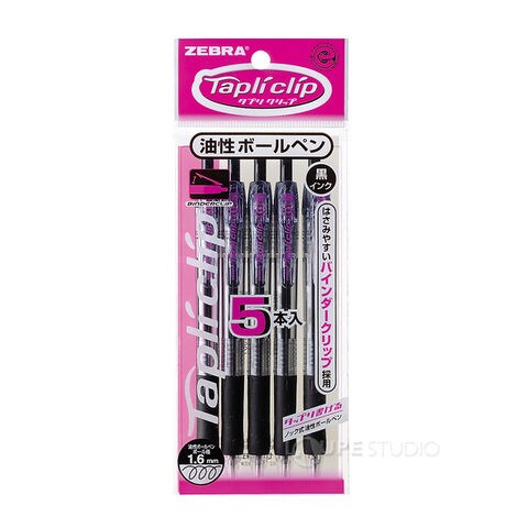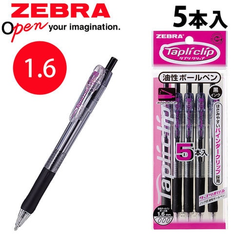 ボールペン ペン 1.6 油性 文具 文房具 筆記用具 オフィス 学校 タプリクリップ 黒5本入 おしゃれ おすすめ