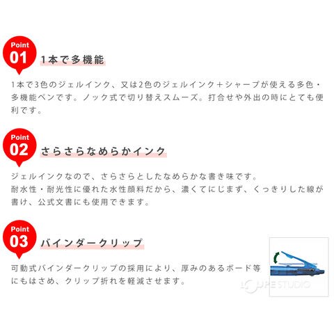 • 1本でインク色黒・青・赤の3色