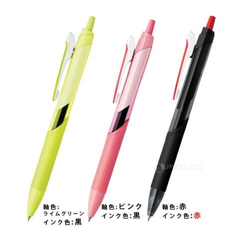 紙に浸透しやすい新成分をインクに配合。すぐに紙に染み込むので、書いた直後に触れても汚れません。乾燥時間は当社従来品に比べ約85%短縮しました。(0.5 ミリで普通紙に書いた場合)低粘度のジェル状のインクにしたことで、よりさらさらとした軽い書き味の筆記感を実現しました。色の濃い染料の色材を使い、筆記線がよりくっきり見えるようになりました。