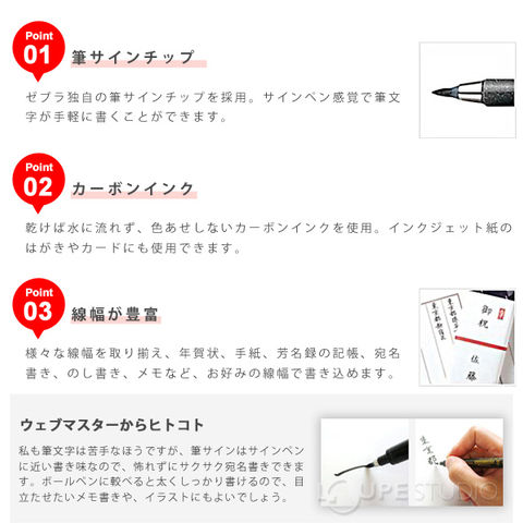水に流れず変色しないカーボンインク搭載。芳名録等の記帳に。