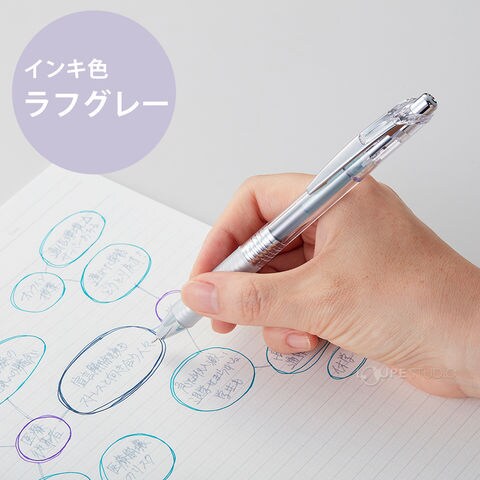 - クリアなボディから見えるカラーの替芯パイプによって直感的にインキ色がわかります。