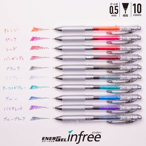 ぺんてる Pentel ボールペン エナージェル インフリー 10色セット 0.5mm 極細 文具 文房具 筆記用具 ビジネス オフィス 学校 おすすめ 人気 書きやすいスペック