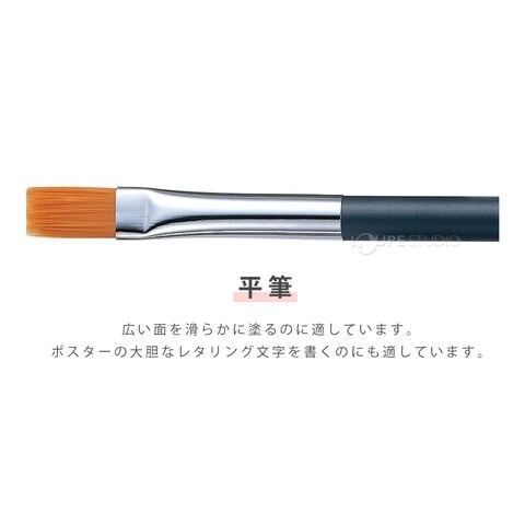 独自製法の特殊毛材を使った、まとまりが良く、耐久性に優れた穂先のデザイン筆。デザインから絵手紙まで幅広く使え、アクリル系えのぐも使えます。広い面を平滑に塗るのに適しています。