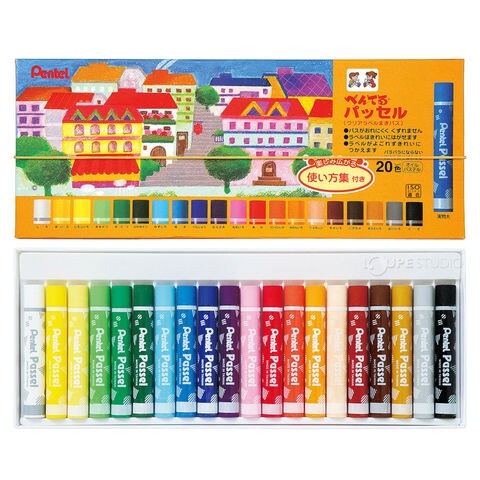 ぺんてる Pentel パステル パッセル クリアラベルまきパス 20色 ゴム掛け付き 絵 イラスト 図工 工作 美術 文房具 学校 画材 おすすめ