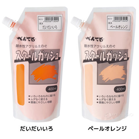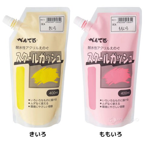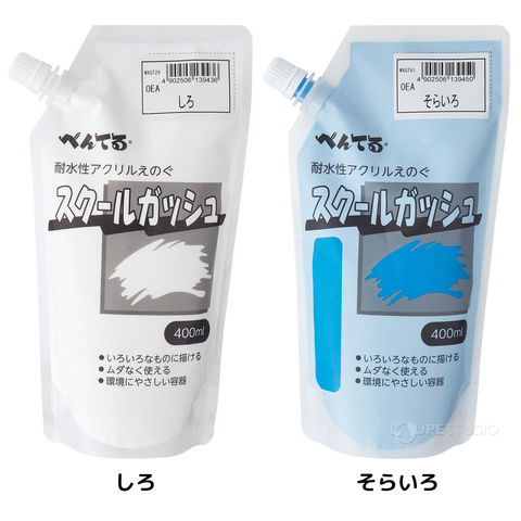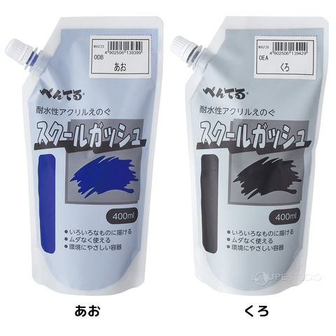 | 材質 | キャップ/PE、シュリンクフィルム/PET(400ml)、PS(200ml)、容器/PET・PA・PE3層構造、えのぐ/顔料・体質顔料・アクリル系樹脂・安定剤・水 |