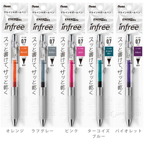 - "なめらかな書き心地"、"筆跡の速乾性"、"濃く鮮やかな筆跡"が特長のエナージェルインキは、インフリー以外にもさまざまなエナージェルシリーズに搭載され、発売20年を迎えた今なおご愛用され続けている信頼のインキです。
