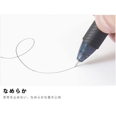 エナージェルインキ採用。軽くなめらかな書き味。濃くはっきりとした文字が書け、速記にも強く、乾きも速い。ノックしてすばやく書けます。