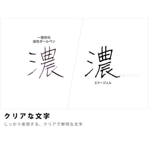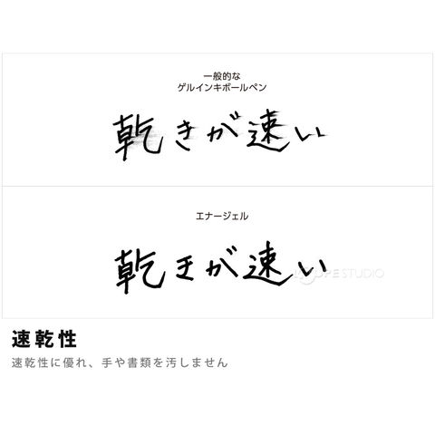 エナージェルインキ採用。軽くなめらかな書き味。濃くはっきりとした文字が書け、速記にも強く、乾きも速い。ノックしてすばやく書けます。