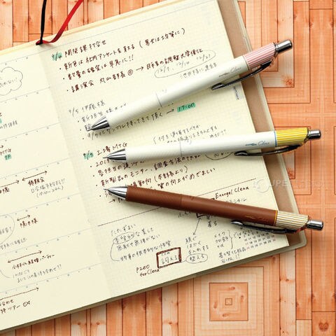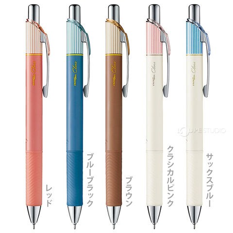 スッと書けてサッと乾く、エナージェルインキ採用。統一感ある生成り色の軸とストライプ柄は上品さや個性を表現し、ふんわりしつつもクラシックな雰囲気纏うエナージェルです。
