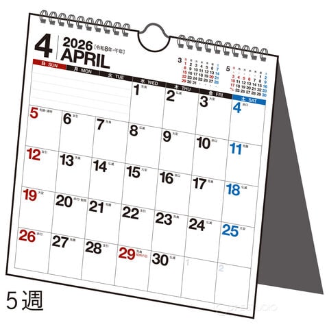 カレンダー 2026年 1月始まり 2026 卓上 壁掛け 兼用 シンプル A5 リング式 エコカレンダー 壁掛 定番 オフィス 事務所 高橋書店 TAKAHASHIスペック