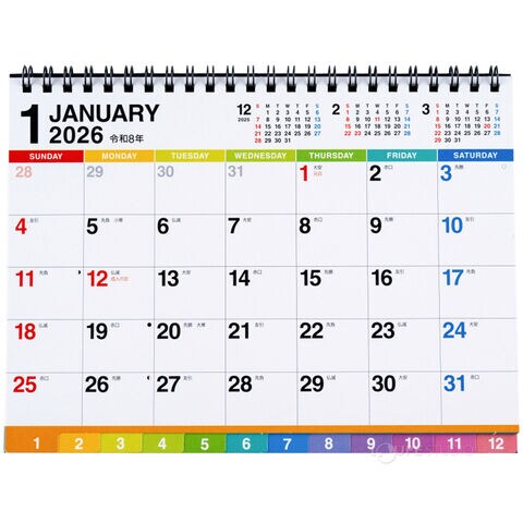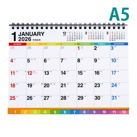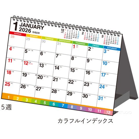 カレンダー 2026年 1月始まり 2026 卓上 シンプル A5 リング式 エコカレンダー卓上A5 カラフル オフィス 事務所 高橋書店 TAKAHASHIスペック