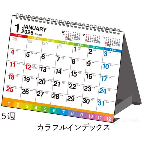 カレンダー 2026年 1月始まり 2026 卓上 シンプル A7 リング式 エコカレンダー卓上A7 オフィス 事務所 カラフル 高橋書店 TAKAHASHIスペック