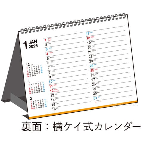 裏面の横ケイ式カレンダーは、日々の記録やちょっとしたメモなどにご使用いただけます。