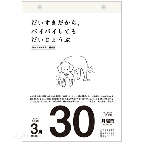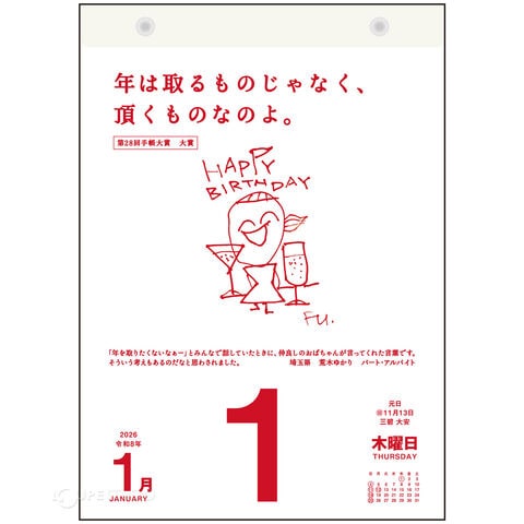 名言大賞部門では4万通を超える応募をいただいており、毎日の暮らしに活力をあたえる名言・格言として発表すべく「日めくりカレンダー」にして世に送り出しています。
