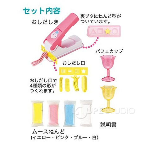 | セット内容 | ムースねんど(イエロー・ピンク・ブルー・白)、おしだしき、パフェカップ、説明書柄/モンスター |