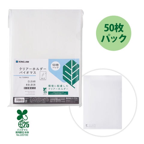クリアーホルダー A4 縦型 収納 クリアーポケット バイオマス 50枚パック 整理 文具 事務用品 学校 教材スペック