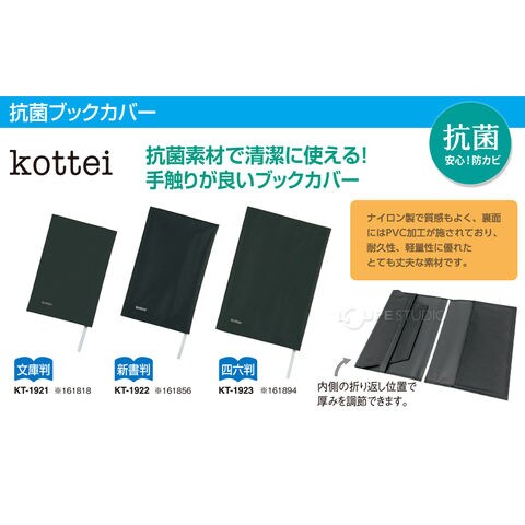 ブックカバー 四六判 コッテイ 黒 ブラック 抗菌 本 軽量 丈夫 しおり付き おしゃれ シンプル ナイロン製 通勤 通学 プレゼントスペック