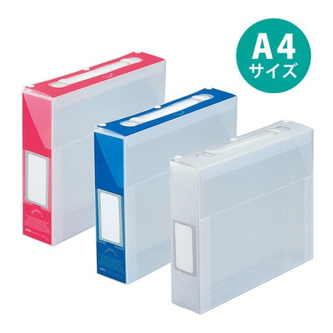 ファイリングの機能をもつA4サイズの透明収納ケース。組み立て簡単なノックダウンタイプ。