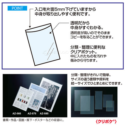 クリアポケットなら、分類・整理がきれいで簡単!サイズの違う書類や資料を統一サイズでひとまとめにできます。