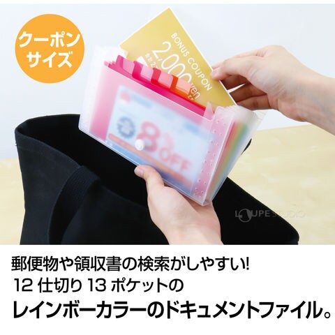 ファイル アドワン レインボードキュメントファイル 領収書 郵便物 クーポン 収納 整理 保管 仕分け 事務用品 オフィス 家庭 セキセイスペック