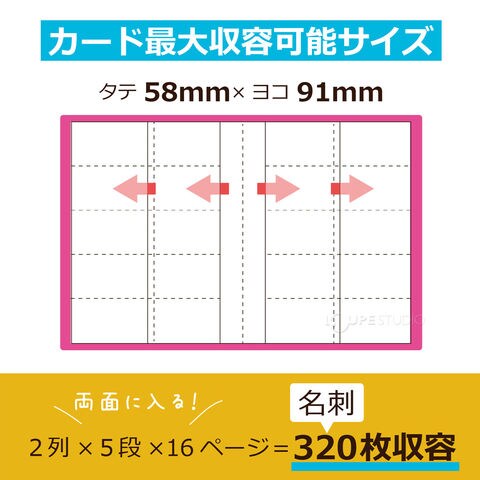 | 仕様 | A4-S ヨコ入れ2列5段、中袋16枚(両面ポケットタイプ)、名刺320名 |