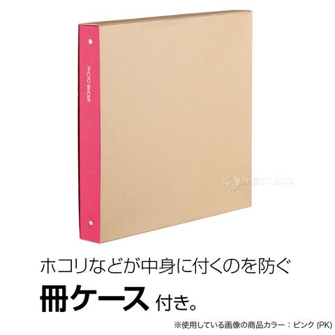 - 台紙の増減、差し替えが簡単にできる4穴リングバインダー。後からページの順番を変更したり、欲しいページだけを取り出したりできます。