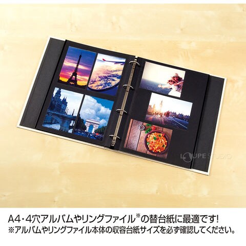 写真や雑誌の切り抜きも一緒にレイアウト!A4 4穴タイプのフリー台紙。写真が映える黒台紙。