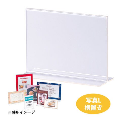 サインスタンドT 両面用 写真L横置き フォトフレーム 写真立て 卓上 メニュー POP 広告 展示 飲食店 セキセイスペック