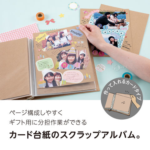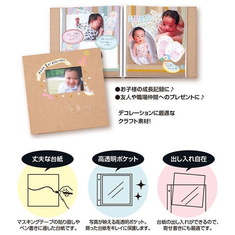 - 高透明ポケットに、丈夫な厚口の台紙が1枚ずつ入った、スクラップ・デコレーションに最適なアルバム。