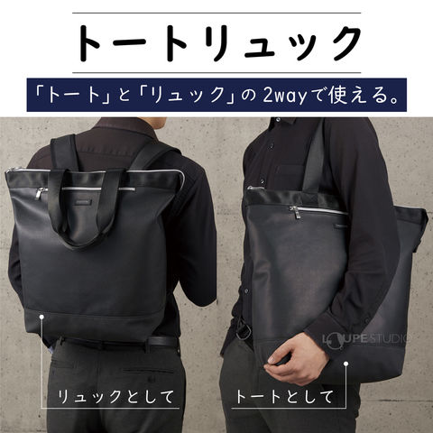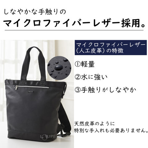 - トートとリュックの2Wayで使えるトートリュック。機能を厳選した、上品でシンプルなデザイン。