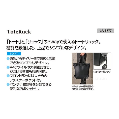| 仕様 | トートリュック、A4サイズ収容可能 |