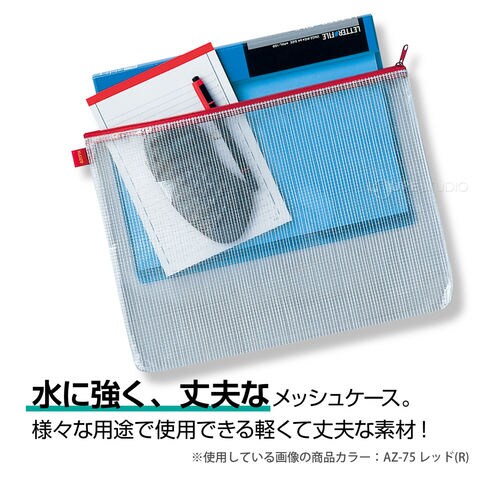 アゾン メッシュケース ミニ A7 LIPサイズ ブルー ファスナーケース ポーチ ケース 小物入れ 文房具 文具 ビジネス 学校 旅行 セキセイスペック
