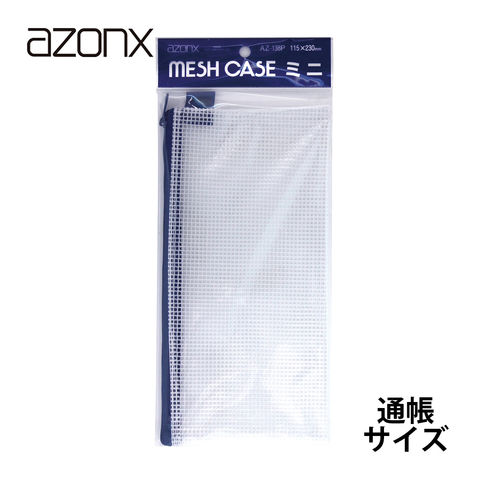 アゾン メッシュケース ミニ C6パック 通帳サイズ ブルー ファスナーケース ポーチ ケース 小物入れ 文房具 文具 ビジネス 学校 旅行 セキセイスペック