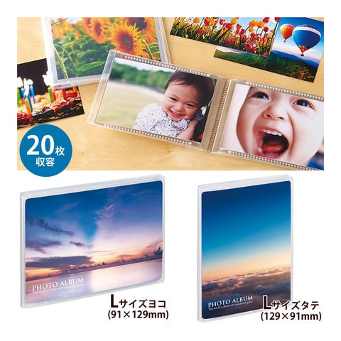 アルバム フォトアルバム ベビー 手作り 写真 l判 薄型 ファイル シンプル おしゃれ 高透明ポケットアルバムL 20Pクリア 縦 横スペック