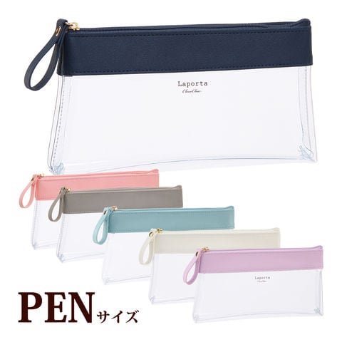 クリアケース ペンケース ポーチ スリム チャック付き ラポルタ Lapoirta 透明 収納 小物 文具 整理 事務用品 オフィス 学校 持ち運び 薄型 PEN ネイビー ピンク