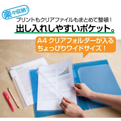 A4サイズ対応。(見開きA3サイズ用紙も収容可能)