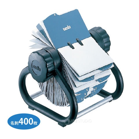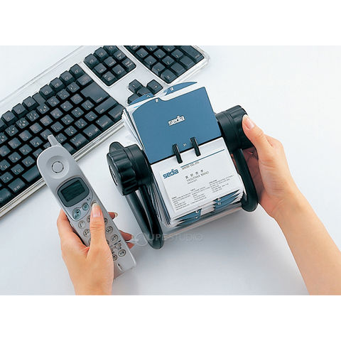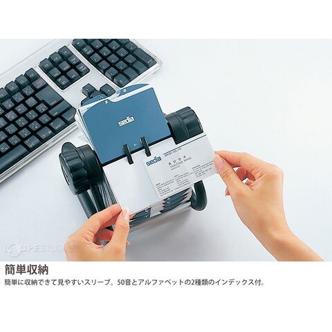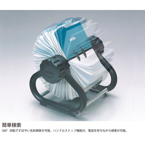 50音インデックスで簡単、スピード検索ができる回転式の名刺ホルダー。