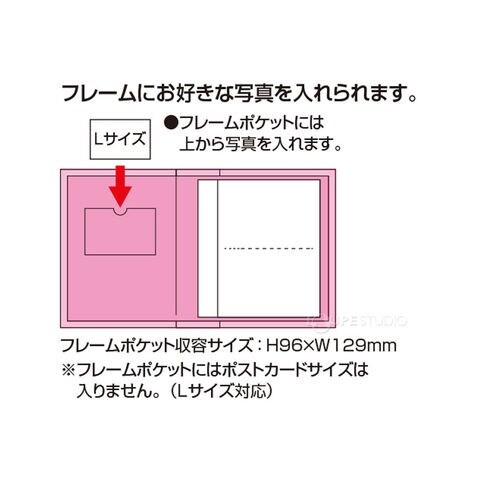 優しい色合いのカラーバリエーションが特長の6色展開。 表紙にフォトフレームが付いたアルバム。