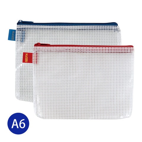 小物入れ バッグ 透明ケース 収納 整理 持ち運び 薄い ビニール アゾン メッシュケース A6 ブルー レッド