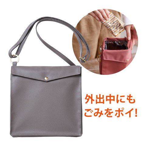 ゴミ箱 ホルポ ごみ箱バッグ レザー調 グレー 大容量 携帯 犬 散歩 ペット 赤ちゃん オムツ おむつ ベビーカー 車内 アウトドア キャンプ 釣り 外出 交換 衛生的 マナーポーチ トリーツポーチ おしゃれ シンプル