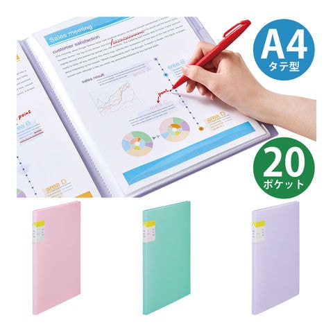 ファイル クリアーファイル A4 カキコ 20ポケット 収納 整理 仕分け 書類 オフィス 事務用品 資料 楽譜 書き込める 便利 比較 閲覧スペック